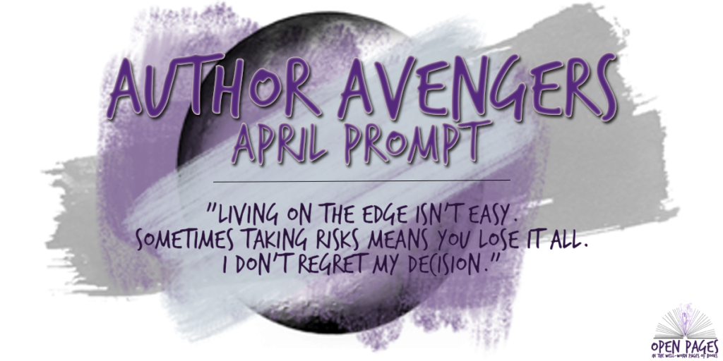 This month’s prompt – or more accurately prompts – was given to us by L’poni Baldwin. The plethora of choices could have been overwhelming, but honestly just made me excited. I’ve saved a few to come back to later. The one I did wind up choosing was, of course, emotional. I do love some good quality angst.